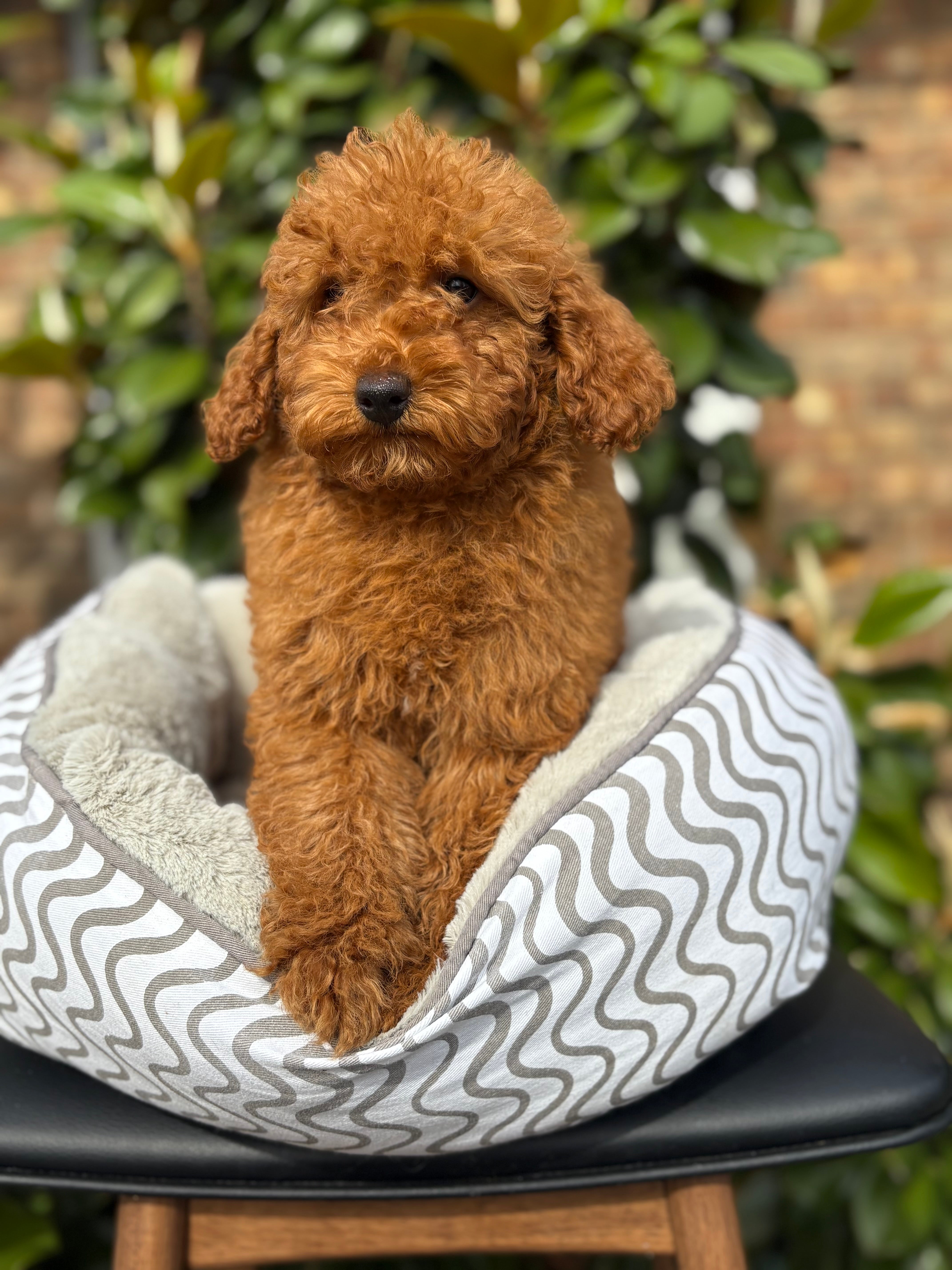 Hi, I'm a purebred non shedding red miniature poodle male, and I’m very pleased to meet you!