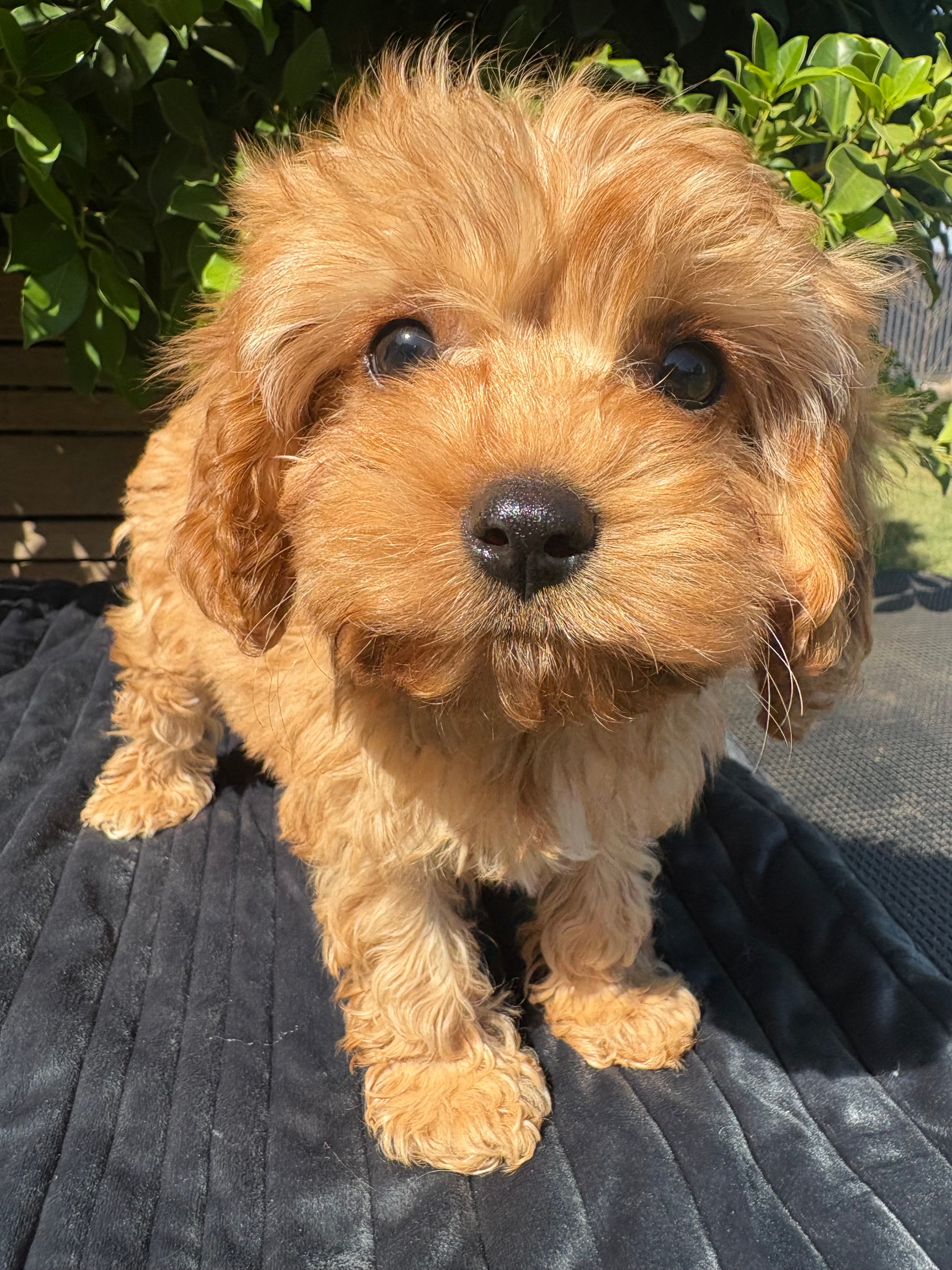 Hi, I'm a non shedding Female Ruby Toy Cavoodle, and I’m very pleased to meet you!